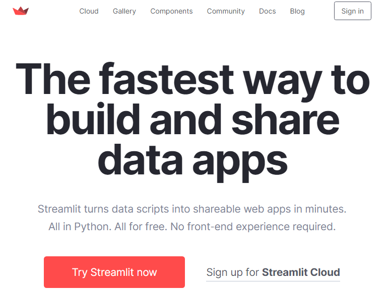 스트림릿은 파이썬으로 작성된 데이터 스크립트를 웹으로 공유할 수 있는 서비스다.