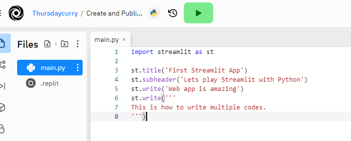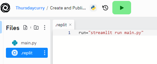 이후 같은 폴더 내 ‘.replit’이라는 파일을 만들어주고 아래와 같은 코드를 작성해준다.