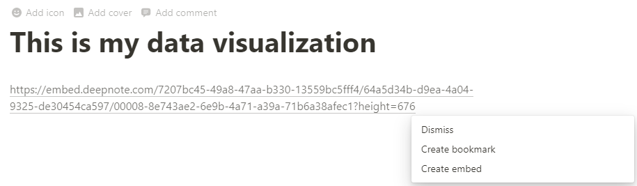 노션 페이지에 복사 후 Create embed 옵션을 눌러준다.