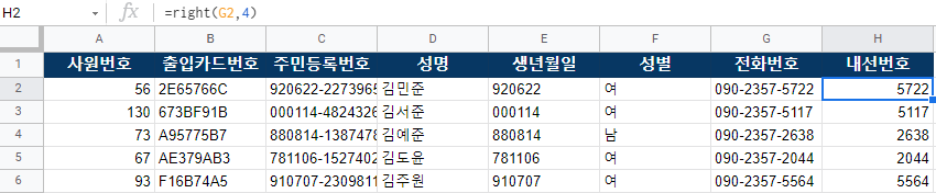 right 함수 활용해 오른쪽에서 4번째자리까지의 4개 수를 구해서 반환한다. 어렵지 않다.