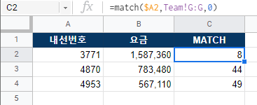 MATCH 함수로 범위에서 일치하는 값 위치 찾기