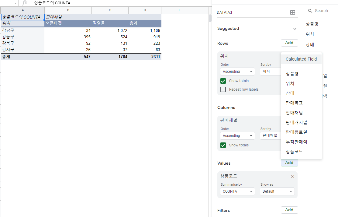 요약 기준과 계산 필드로 피벗 테이블 값 바꿔주기