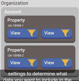 Organization : All of GA accounts can be grouped under an ‘Organization’. You can manage multiple accounts.