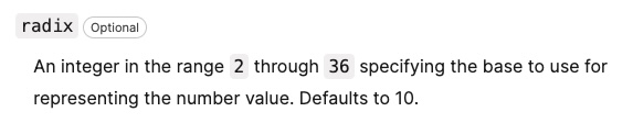 - 게다가 toString에 arg를 2로 넣으면 2진수로 바꾼다는 점도 새롭다.
