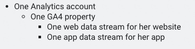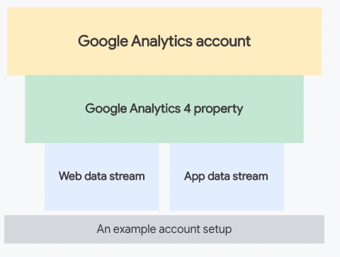 A Google Analytics account can include multiple properties and property types, but a property can belong to only one Analytics account.
