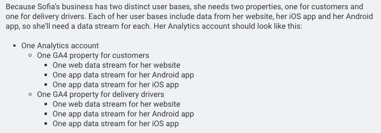 A property is the container for your reports based on the data that you collect from your apps and sites. one Property focusing on one user base.