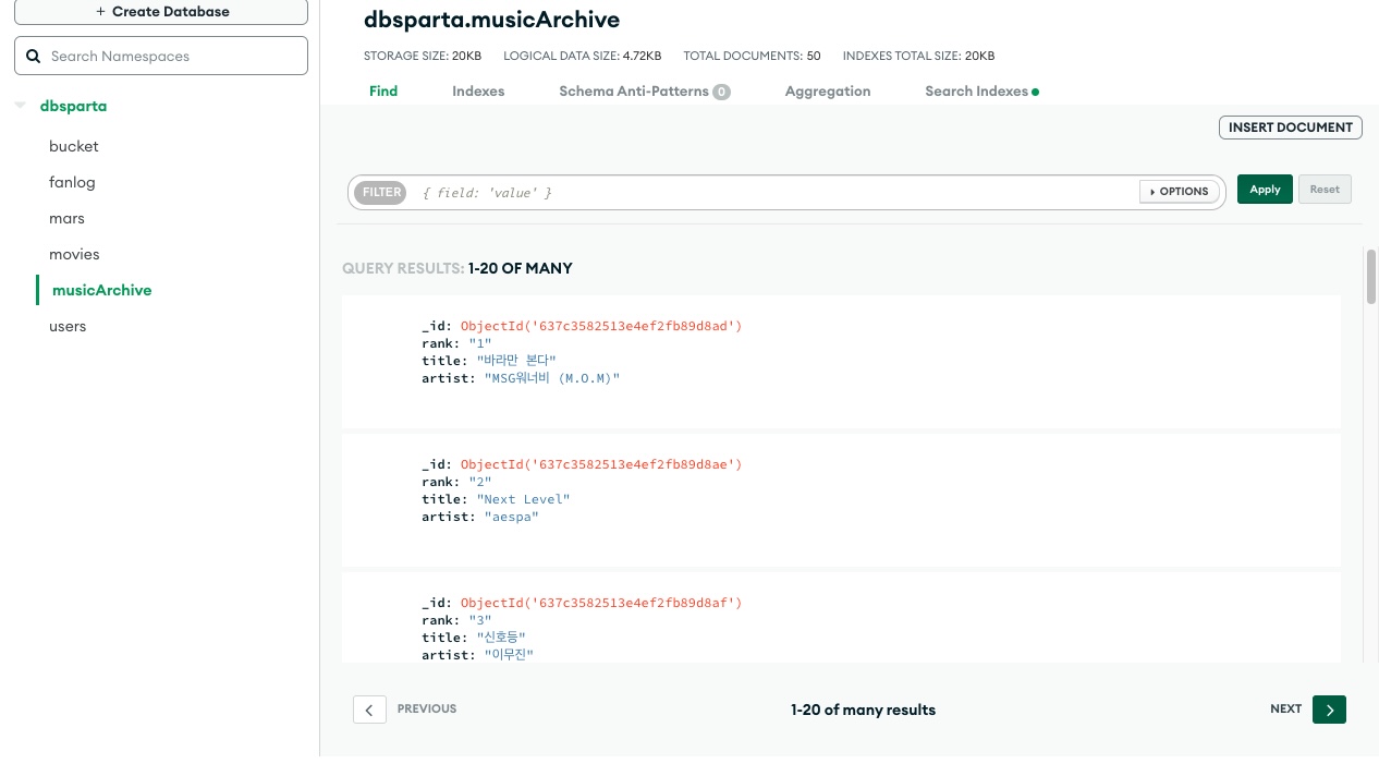 bs4로 지니뮤직 스크래핑하여 mongoDB에 저장하기