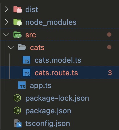 cats 폴더 내 model과 router를 넣어두었다. model은 데이터가 든 파일인데 무시하자. router.ts에 집중하자.