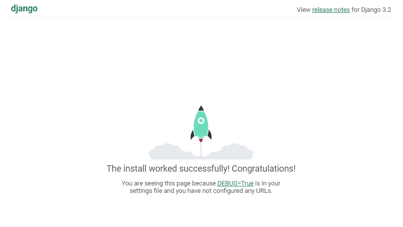 장고로 만든 웹 사이트가 성공적으로 만들어졌다는 축하 문구다. 프로젝트를 위한 준비는 끝났다. 이제 투표앱 만들기를 본격적으로 진행해보자.