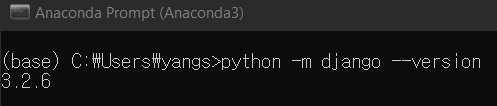 3.2.6 버전이 설치되어있는 것을 확인할 수 있다! 설치되어 있지 않은 경우 “No module named django”라는 문구가 뜬다고 한다.