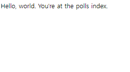 http://127.0.0.1:8000/polls/ 주소로 들어가서 확인해보면 아래와 같이 나온다.