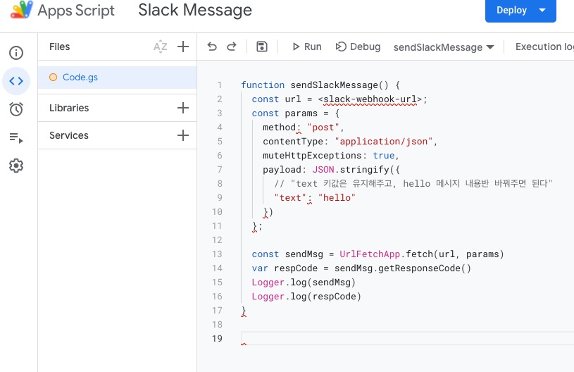 Google Apps Script를 사용해서 일정 시간마다 Slack 채널로 메시지를 전송하는 것이 목표다.