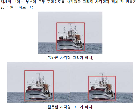 작업을 하다 겹치는 객체들은 어디까지 네모를 지정해줘야 하는지 궁금해졌다. 선박해양플랜트연구소에서 작성한 인공지능 데이터 구축·활용 가이드라인(URL)을 보니 아래와 같이 가이드한다.