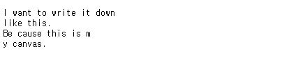 | <pre> I want to write it down like this. Be cause this is m y canvas. </pre> |
