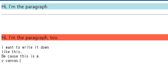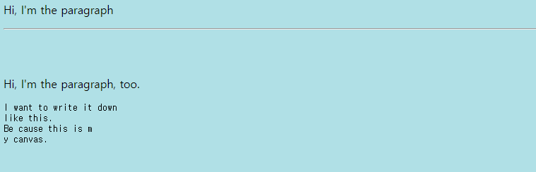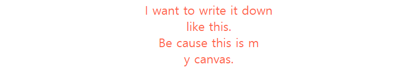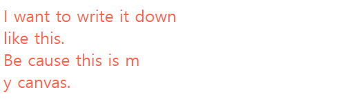 | <pre style="color:tomato;"> I want to write it down like this. Be cause this is m y canvas. </pre> |