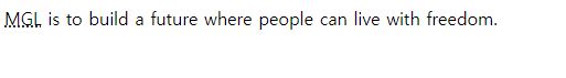 | <p><abbr title="My Goal">MGL</abbr> is to build a future where people can live with freedom.</p> |