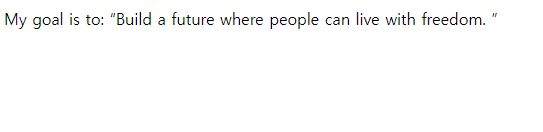 | <p>My goal is to: <q>Build a future where people can live with freedom. </q></p> |