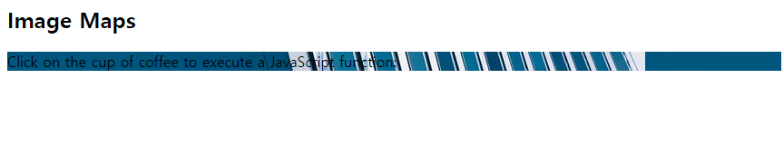 | <body> <h2>Image Maps</h2> <p style="background-image:url('https://images.unsplash.com/photo-1649436937510-2644430dc1e1?ixlib=rb-1.2.1&ixid=MnwxMjA3fDB8MHxwaG90by1wYWdlfHx8fGVufDB8fHx8&auto=format&fit=crop&w=703&q=80');">Click on the cup of coffee to execute a JavaScript function:</p> </body> |