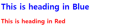 | <h1 style="color:blue">This is heading in Blue</h1> <h2 sytle="color:red"> This is heading in Red</h2> |