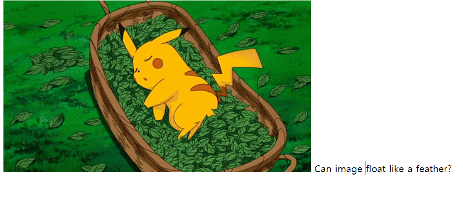 | <p> <img src="https://media4.giphy.com/media/i6hhAddlCU2C4/giphy.gif?cid=ecf05e472f242cfa42905a42e728d05d7c3871e5dbf88316&rid=giphy.gif&ct=g" alt="Not Nietzsche" styles="float:left;width:500px;height:300px;"> Can image float like a feather?</p> |