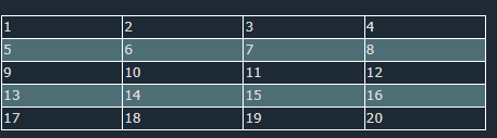 | td:nth-child(even), th:nth-child(even) { background-color: #D6EEEE; } |
