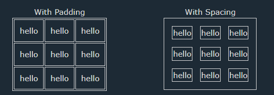 HTML tables can adjust the padding inside the cells, and also the space between the cells.