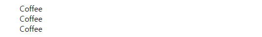 | <ul style="list-style-type:none;"> <li>Coffee</li> <li>Coffee</li> <li>Coffee</li> </ul> |