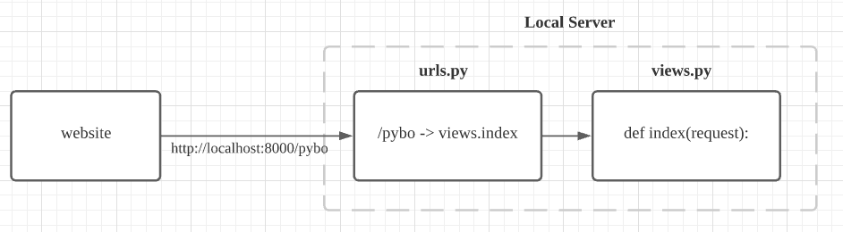 - Website 브라우저에서 로컬 서버로 ‘http://localhost:8000/pybo’페이지를 요청한다.