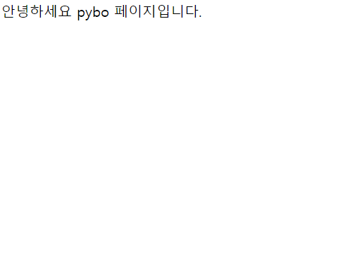 http://localhost:8000/pybo 페이지에 들어가면 아래와 같은 문구가 정상적으로 뜬다.
