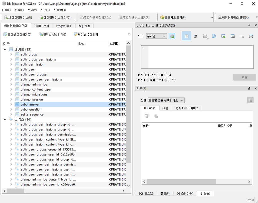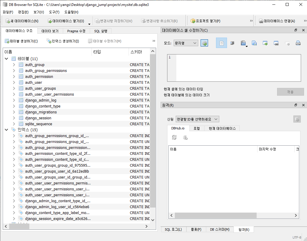 SQLite의 GUI 도구인 “DB Browser for SQLite” 설치하면 DB의 테이블들을 확인할 수 있다.