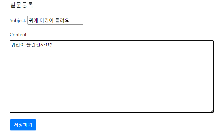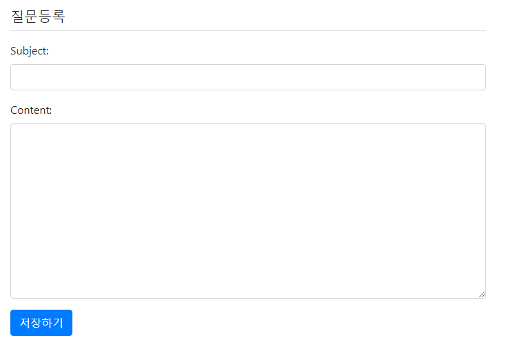 이렇게 할 경우 question_form 템플릿은 ‘질문 등록’에서만 사용 가능하다. 추후 ‘질문 수정’을 하고싶다면 action 값을 달리 해야 한다. 따라서 동일한 템플릿을 여러 기능이 함께 사용하는 경우 form의 action 속성을 비워둔다.