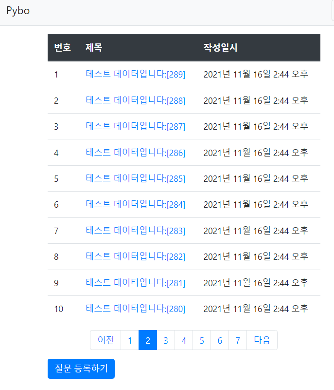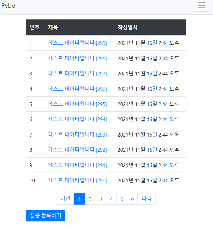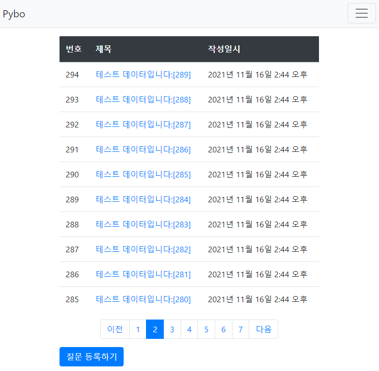 {% load pybo_filter %} 문을 상단에 적어준 뒤 번호 부분에는 공식을 적용한 모습이 보인다.