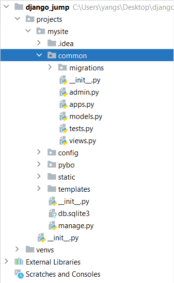 | (mysite)../projects/mysite/django-admin startapp common |