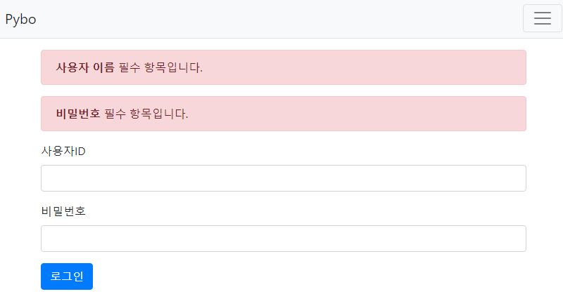 오류메시지도 정상적으로 뜬다.