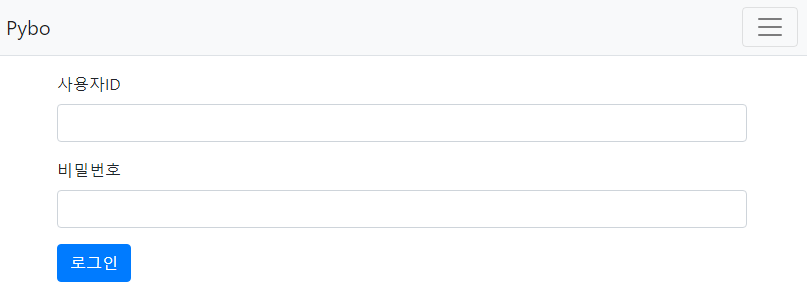 위까지 수정하고 네비게이션바의 ‘로그인’링크를 누르면 아래와 같은 페이지가 뜬다. 주소는 localhost:8000/common/login/