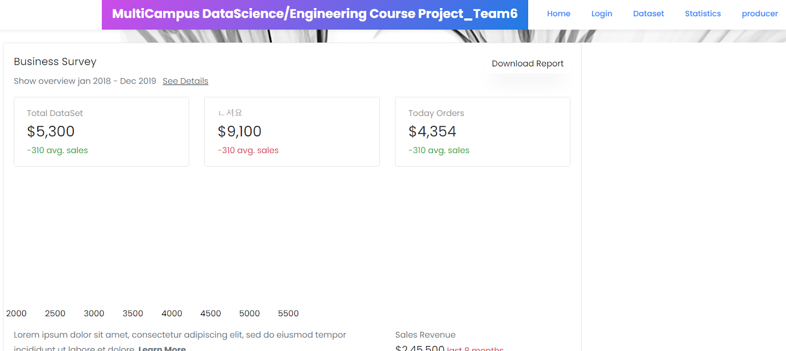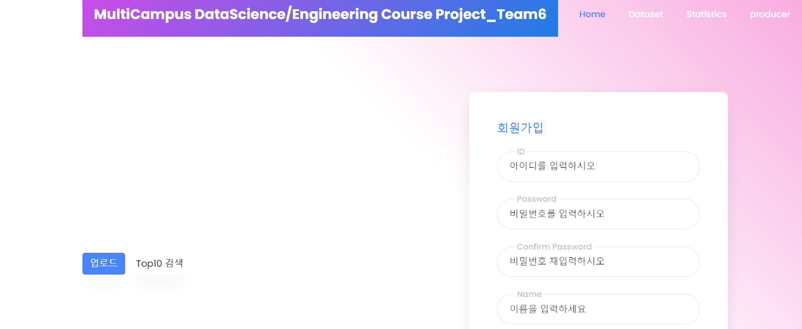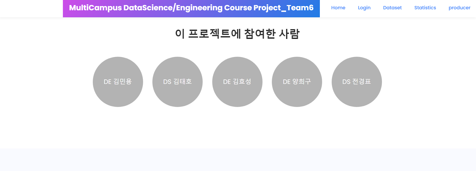 위에서 Home, 데이터세트, 통계 그래프… 등은 상단 네비게이션 바에 있는 메뉴들이다. 그중 데이터 세트를 dataset.html 템플릿과 연동시켜주자.