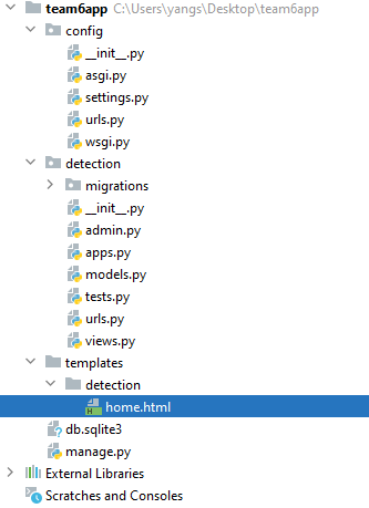 detection/home.html을 반환시키는 함수를 만들었다. 그렇다면 home.html 파일을 만들어주어야 한다. 하지만 그 전에 우선 템플릿 디렉토리 경로 설정부터 해주자.
