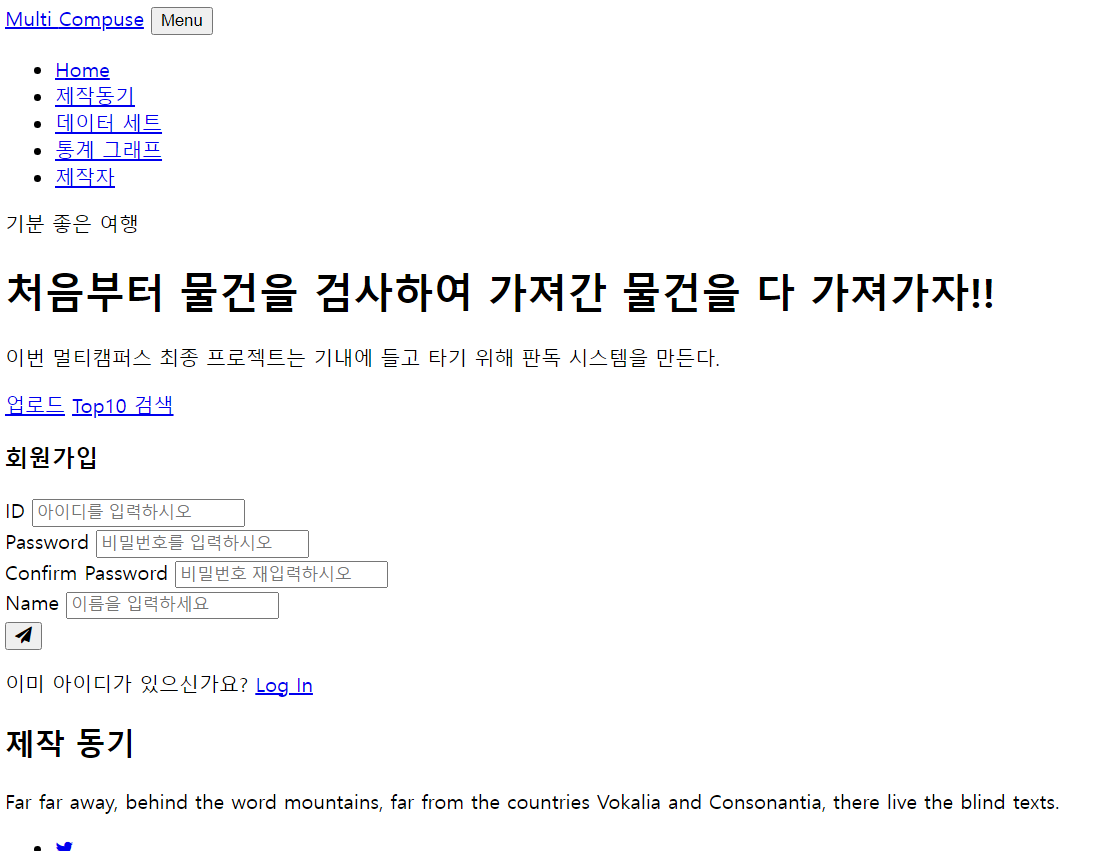 화면 속 내용은 ‘사진에서 수화물 반입금지 물품을 자동으로 감지해주는 웹 프로그램’의 사이트의 일부를 나타내고 있다. 현재 필자는 멀티캠퍼스 데이터사이언스/엔지니어링 전문가 8회차 과정에 참여하여 팀프로젝트로 위 서비스를 웹 상에서 구현중이다. 아직 CSS가 적용되지 않아 난잡하지만 정상적으로 작동하고 있다는 것은 알 수 있다.