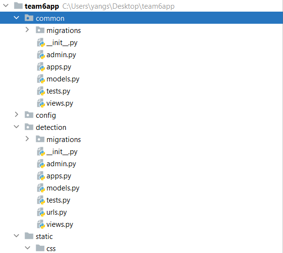 | C:\Users\yangs\Desktop\team6app>django-admin startapp common |