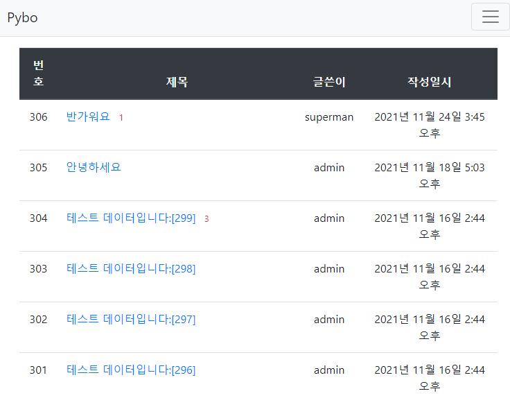 | [Django] 점프 투 장고 튜토리얼 - 3-8. 글쓴이 표시 (0) | 2021.11.25 |