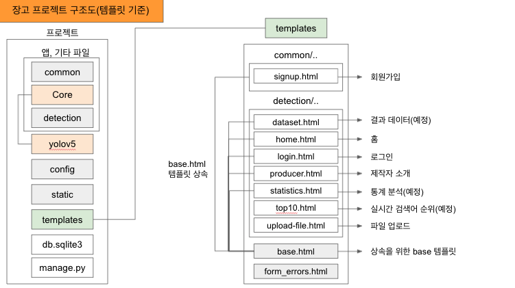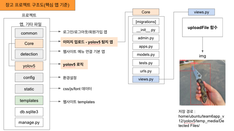 위 장고 구조를 현재 진행중인 ‘이미지에서 기내 위험수화물을 탐지하는 앱’ 프로젝트에 적용하여 구조를 표현하면 아래와 같다.